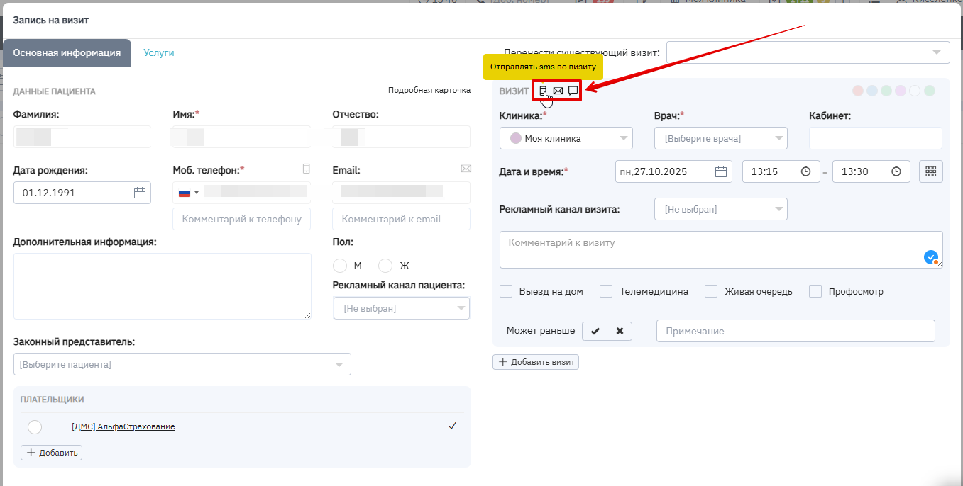 - 🗨️— уведомление с просьбой оставить отзыв о визите
